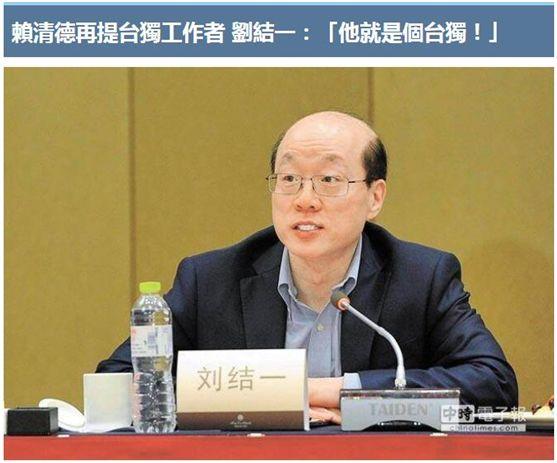 據“中時電子報”16日報道,對賴清德的相關言論,國台辦主任劉結一16日上午直接點名賴清德説,“他就是個台獨!”
