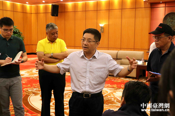 “海峽兩岸記者特區行”採訪團團長、國務院台灣事務辦公室新聞局局長馬曉光接受兩岸記者採訪。(中國台灣網 尹賽楠 攝)