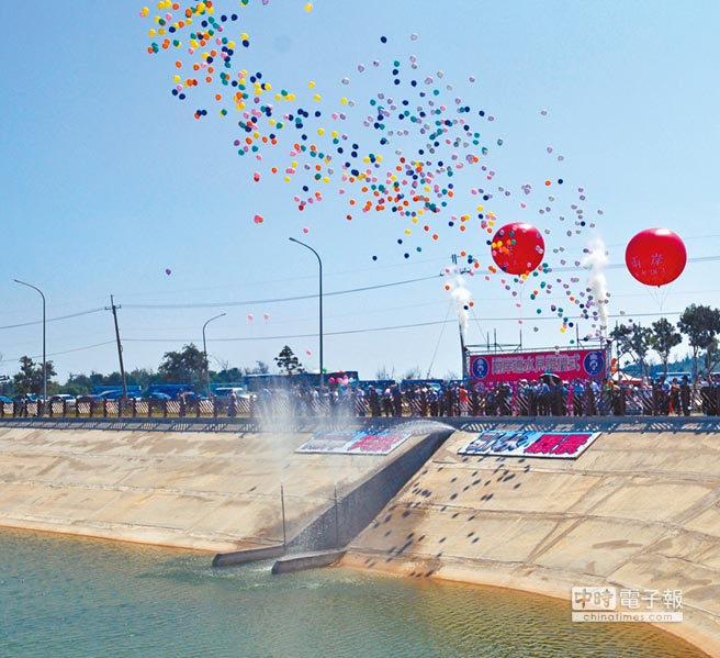 金門縣府昨日上午舉辦兩岸通水見證儀式。面對等了二十幾年的大陸水終於來了,金門當地民眾以辦喜事的心情,開心施放和平氣球。(圖片來源:台灣《中時電子報》)