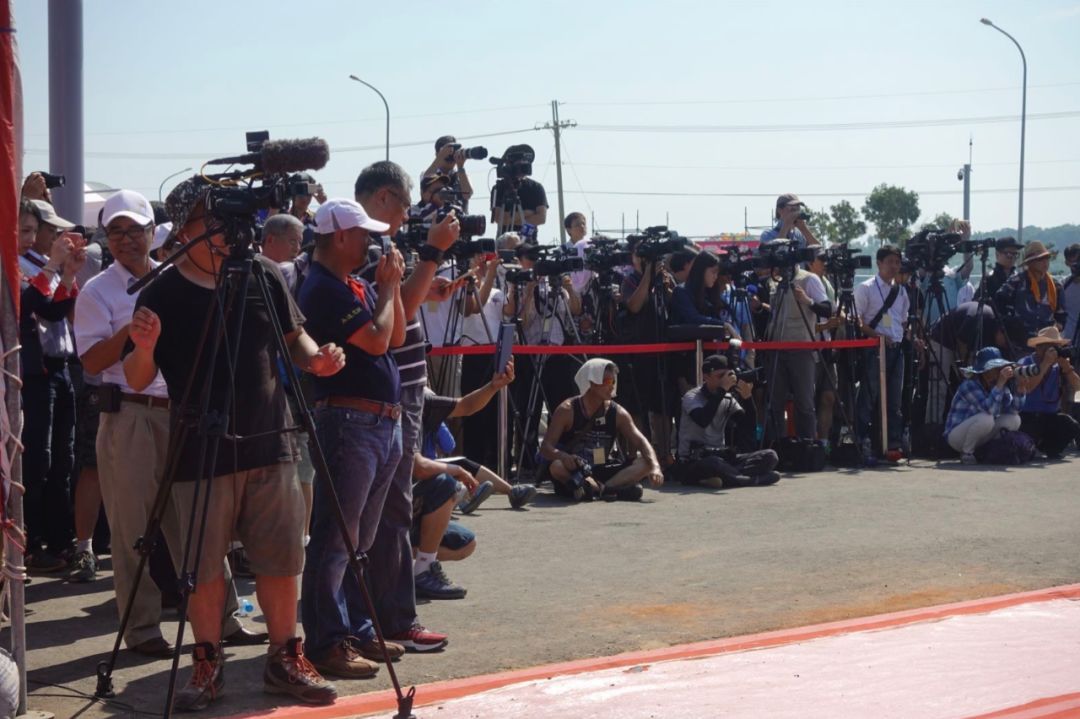 今天的通水儀式,本來預計參與人數不到200人。由於遭到民進黨當局的打壓,引發許多金門在地鄉親不滿,很多人轉而積極參與,以示對家鄉建設的支持。受水池四周的涼亭中,坐滿了老老少少的鄉親民眾,據金門方面的統計,至少有3500人來到現場。兩岸四地的媒體也給予高度關注,大陸、台灣、香港有近40家媒體派出團隊前往現場採訪、直播、轉播。