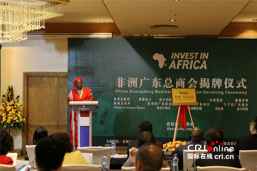 國際在線報道(中國國際廣播電台記者 王新俊):8月3日,非洲廣東總商會在肯尼亞首都內羅畢揭牌成立,肯尼亞工業、貿易與合作部長彼得·穆尼亞、副部長貝蒂·馬伊娜出席儀式並致辭。肯政府相關經貿部門、郡負責人及廣東省貿促會、廣東省惠州市政府代表、肯尼亞僑界、各省商會、中非發展基金肯尼亞代表處及中肯企業代表等100餘人出席活動。