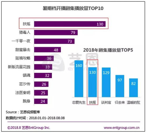 2018年截止到目前播放量表現最好的10部劇集中僅有兩部單平台播出的劇集入圍,而《扶搖》就是獨播劇集裏的冠軍。與多平台播出劇集的流量相比,《扶搖》也毫不遜色。