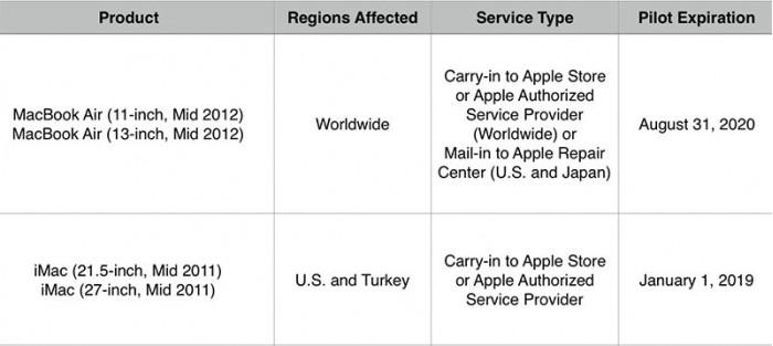 根據內部文件,2011 年中期的 iMac 機型的覆蓋期最初定於 2018 年 8 月 31 日到期,但蘋果公司將其延長至 2019 年 1 月 1 日。然而,與 2012 年的 MacBook Air 不同的是,只有美國和土耳其的 2011 年 iMac 可以獲得這項服務。