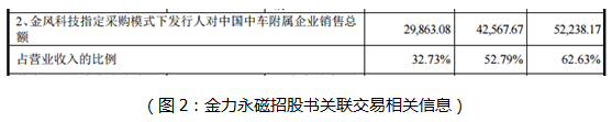 根據招股説明書披露,上市公司金風科技是金力永磁的重要關聯方,金風科技的下屬公司“金風投資控股有限公司”不僅是金力永磁的第二大股東而且金風科技的董事長曹志剛先生還兼任着金力永磁的副董事長。不僅如此,在報告期內金力永磁還與金風科技存在很大的關聯交易,據招股書披露“金風科技既直接向發行人採購磁鋼,同時也指定其供應商中國中車附屬企業 和南京汽輪(2016 年開始)向發行人採購磁鋼”,但是其中卻不乏耐人尋味之處。