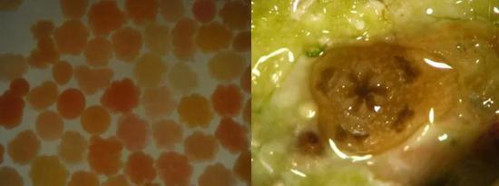 Acropora tenuis )生長至成體後(a),在2015年6月排放出大量珊瑚卵團(b)(圖片來源:Zayasu and Shinzato 2016)。