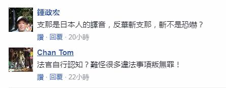 法官甚至還聲稱“支那”在台灣人認知上是“CHINA(中國)”的譯音,沒有恐嚇意涵,而“反華斬支那”是表達政治立場,即反對統促黨的理念,當局應該給這種所謂“高度政治性言論”最大限度的維護。