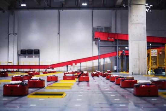 亞馬遜早在2014年就推出了機器人項目,它沒有任何完全自動化的倉庫,但它的物流中心所管理的包裹種類要比京東的自動化倉庫更廣泛。