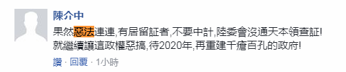 另有人諷刺:民進黨已經忙着下台,就別再忙這些事(指為申領大陸居住證出台措施)了。