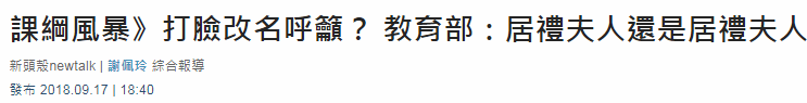 眼見新課綱剛剛審核通過就遇到輿論阻力,就連蔡辦也出面對“教育部”表示支持。蔡辦發言人黃重彥17日下午表示,有關“這位女性科學家”的姓名稱呼,課審會只是提出原則性的建議。