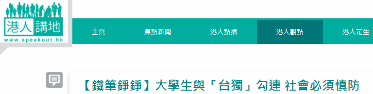 作者擔心,香港大學生追求是要訴諸暴力但必然會失敗的“港獨”,還要與“台獨”份子勾連,呼籲關心一下大學生並勸導他們不要成為政客的“爛頭卒”。