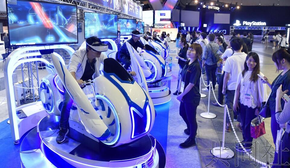 VR遊戲區展示了能體驗到猶如乘坐摩托車以及車型載具參加真正競賽的遊戲。展覽負責人表示:“可享受對戰樂趣的電競的人氣也波及到了VR領域。”