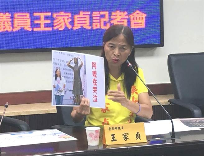 台南市政府宣稱“台獨”是主流民意,台南市議員王家貞痛批製造市府假新聞。(圖片來源:台灣“中時電子報”)