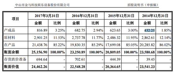 此外,中山金馬的財務數據也存在很大疑點。根據招股書披露,中山金馬的“滑行車類遊樂設施”產品在2015年的產銷量分別為41台和50台,2016年產銷率均為38台,2017年產銷量分別為29台和35台,可見這對應着在最近三年中“滑行車類遊樂設施”產品總體銷量超過產量達15台。