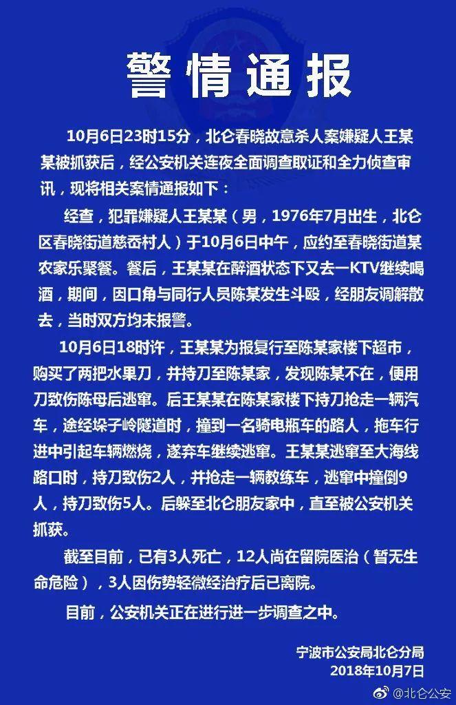 警方通報:寧波故意殺人案犯罪嫌疑人已被抓獲,已致3死15傷!
