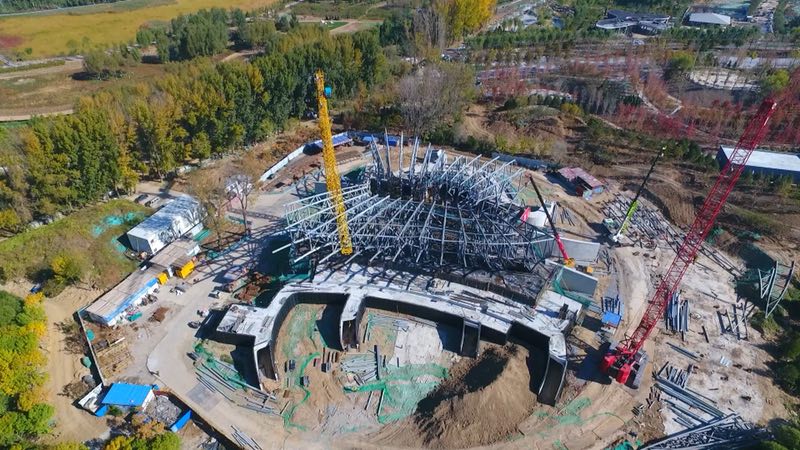 據北京世園局副局長葉大華介紹,目前,北京世園會園區公共綠化景觀,喬木、灌木種植完成90%的工程量。基礎設施工程各種管線隱蔽工程基本完成;園區內道路框架體系基本成型,能源站、配電室進入裝修階段。主要場館建設有條不紊,目前,中國館梯田堆築完成94%,機電設備安裝完成70%,幕牆工程完成72%。國際館鋼結構工程完成95%,鋼結構花傘共94顆,已經吊裝完成93顆。生活體驗館二次結構砌築及屋面工程基本完成。演藝廣場混凝土結構完成。