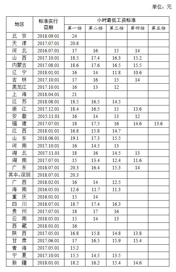 10日,人社部公佈全國各地區最低工資標準情況(截至2018年9月),來看——
