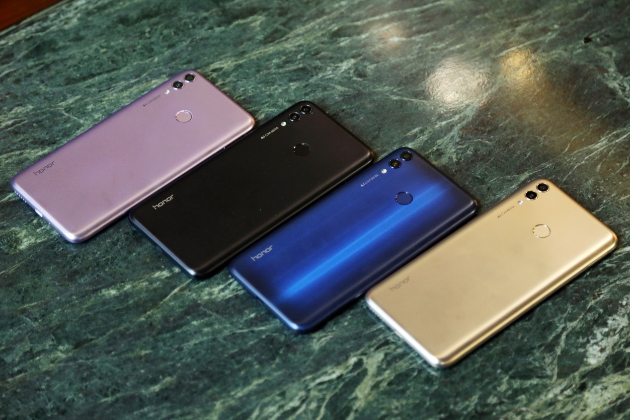 擁有極光藍、鉑光金、幻夜黑、星雲紫4種配色的榮耀暢玩8C搭載6.26英寸劉海全面屏,標配4G內存,售價方面,4+32GB版售價1099元, 4+64GB版售價1399元。