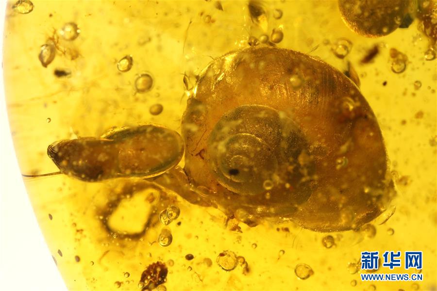 科研人員發現一億年前帶觸角的蝸牛琥珀