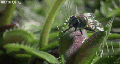 ↑依靠水分的壓力,植物也能動得更加迅速。含羞草葉片的“含羞”,捕蠅草捕蟲夾的關閉,都是依此原理作用的。這是迅速閉合的捕蠅草。(原視頻來自:BBC)