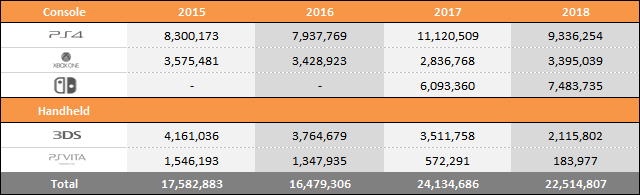 PlayStation 4 – 銷量同比下降 1784255 (-16.0%)
