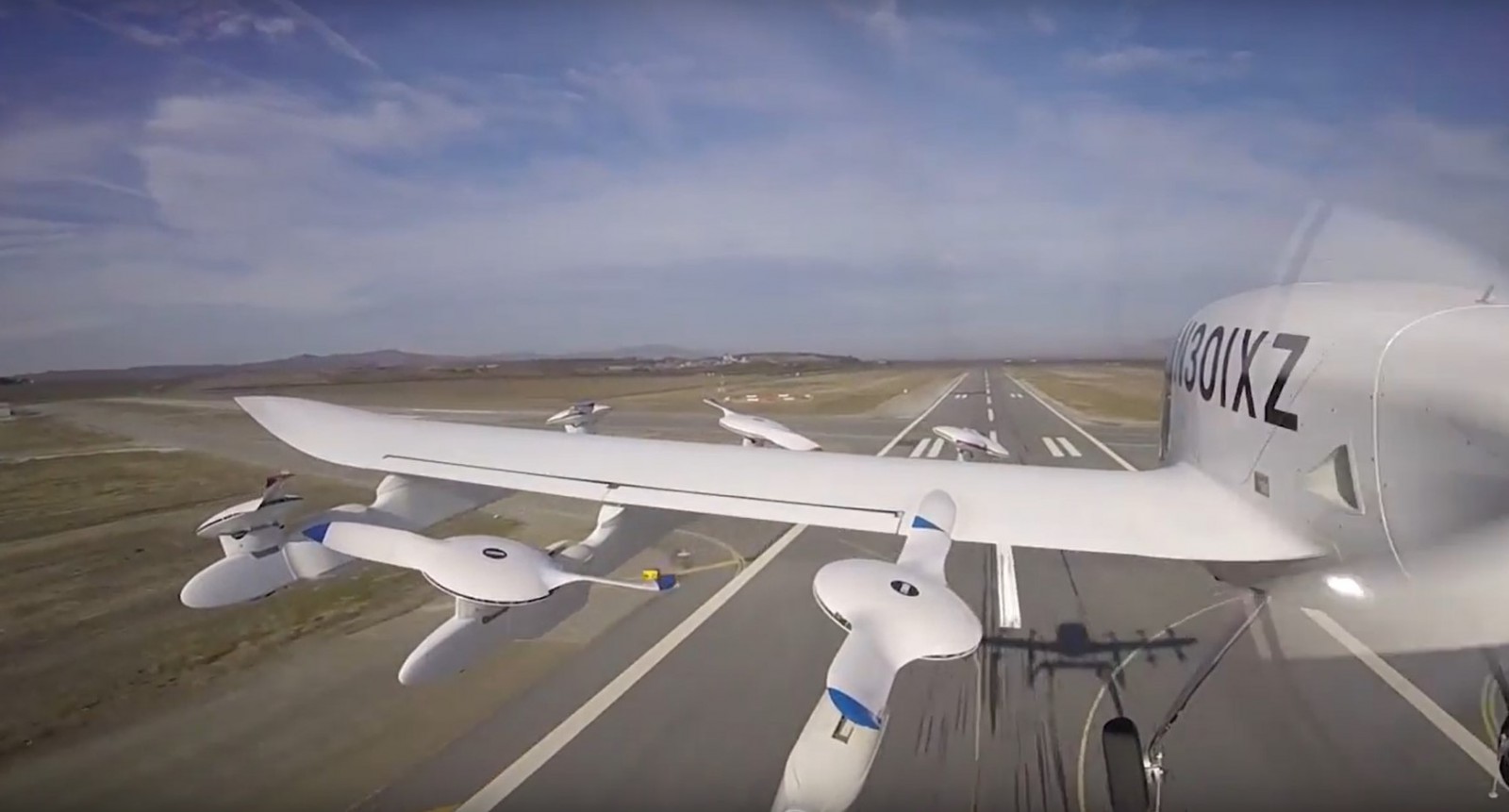 Kitty Hawk 的研究方向是一種類似放大版四軸旋翼無人機的飛行器,可以像直升機一樣原地垂直起飛,達到一定高度後轉而像飛機一樣飛行。它由12個螺旋槳提供動力,共能產生52.2萬瓦動力,約合700馬力,最高時速可達110英里(約合177公里/小時)。