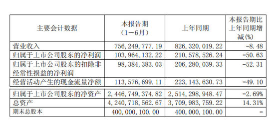 上市後,中曼石油業績大幅下挫。今年上半年,中曼石油業績腰斬,實現歸屬於上市公司股東的淨利潤僅為9838.44萬元,比上年同期減少50.63%。