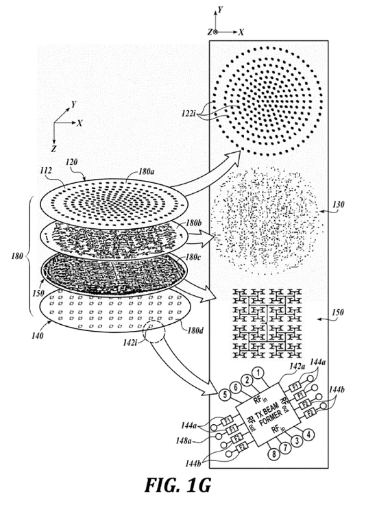 圖2:專利圖顯示了夾層相控陣天線的各個子組件,它由多個印刷電路板組成