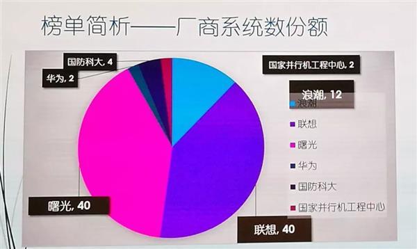 廠商方面,中科曙光、聯想以40台超算系統入圍並列第一,這也是“中科系雙雄”第四次並列榜首,曙光更是第9次奪冠。