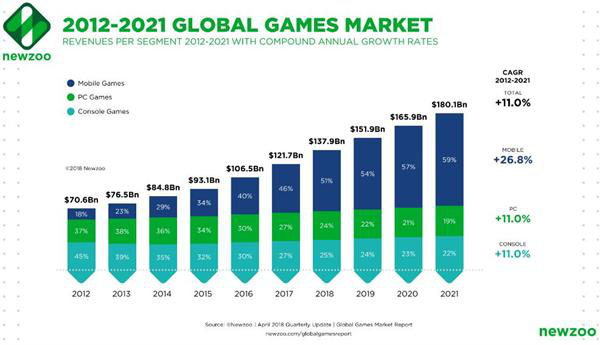 根據市場研究機構Newzoo發佈的《2018年全球遊戲市場報告》,目前全球玩家數量已經超過23億,約佔全球總人口的三成左右,而且仍然處於高速增長的過程中。根據唐彥文的預測,未來十年全球將會有40-50億遊戲人口,如果以聯合國《世界人口展位》中2030年86億的數據作為參考,全球50%-60%的人口都將成為遊戲玩家。