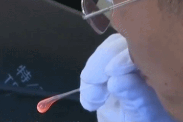 *太原衞星發射中心發測站五室化驗技師 韋樹峯:*我們標準的安瓿球,我們要求壁厚小於0.1毫米,太薄了太厚了都不符合要求。另外一個我們在吹制過程中考量的是化驗員這一口氣,出氣要均勻,不能太大也不能太小,保證我們球的直徑在一個釐米,這是一個標準。
