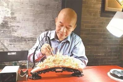 張民輝回憶,聽完他介紹象牙雕刻不再選用非洲象牙作為原材料,而是用猛獁象牙、牛骨等替代時,總書記微笑着點了點頭。近年來,由於牙雕技藝取材的變化,作為牙雕這項國家級非物質文化遺產的傳承人,張民輝感覺遇到了前所未有的挑戰,總書記的微笑給了他莫大的鼓勵。他介紹,今年起,牙雕藝人開始尋求猛獁象牙和牛骨等替代材料讓千年牙雕技藝傳承下去。“這是挑戰,因為空心的牛骨對鑲嵌的技藝有了更高的要求,但也是機遇,由於原材料更加便宜,這項藝術有機會走進千家萬户。”