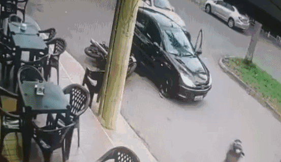 但就在大家開心聊天之際,一名騎乘機車的友人突然倒下,隨後其他友人則紛亂跑開。