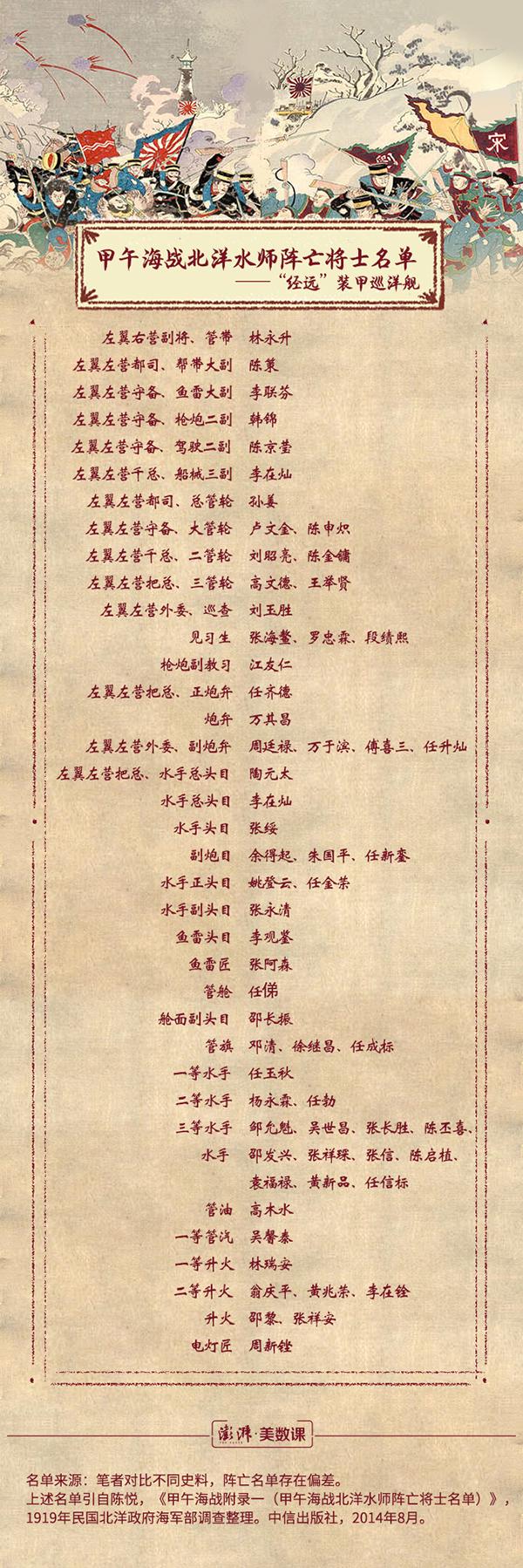 “經遠”艦最終因中彈過多,左舷的水線帶裝甲被打裂脱落,艦體進水不止。管帶、大副、二副先後陣亡。