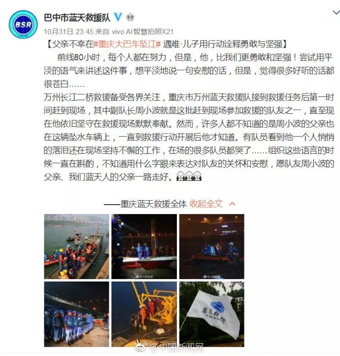 父親不幸在重慶墜江公交遇難 救援隊兒子含淚救援