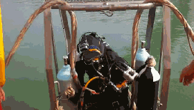 8時18分 ,第六批潛水員下水,完成墜江公交車下方吊索並調整車尾吊帶位置。