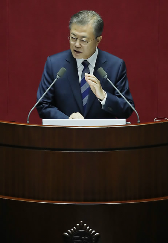 文在寅激情發表施政演説 台下議員掏出課本學漢字