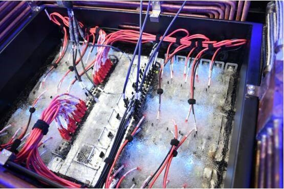 利用張北常年低温、多風的特點,全年351天採用自然新風製冷,能耗降低59%。另一大特色是,阿里還將整個服務器完全浸沒在特殊的高科技製冷液中來實現降温,完全零空調、零風扇。這也是全球互聯網行業首個投入商用的浸沒液冷服務器集羣。