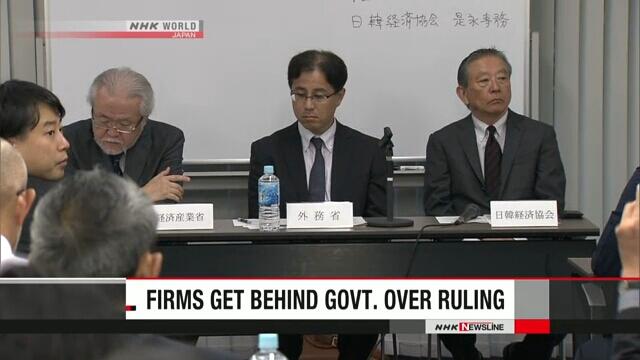 當天的會議共有企業負責人等30人出席。日本外務省負責人在會上對於政府的立場進行了説明,表示“判決令人極為遺憾。問題已經在日韓索賠權協定中得到全面且最終的解決。今後,日本政府也會基於此種立場進行應對”。此外,為了保護韓國境內日本企業的正當經濟活動,外務省負責人表明了日本政府將以堅決態度應對的方針,並尋求官民合作。