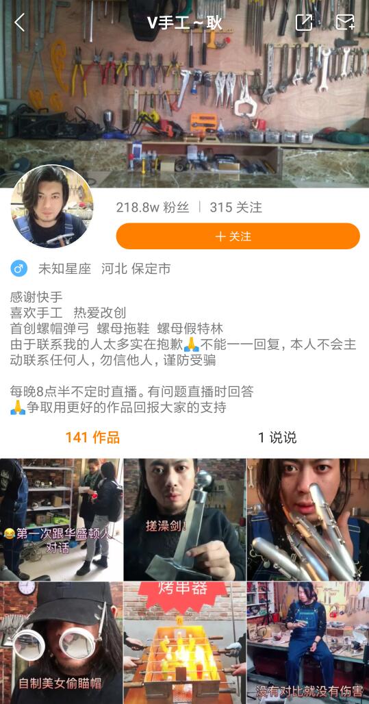 而在快手眾多的用户裏,像耿哥這樣熱愛手工的發明家還有許許多多。根據快手平台的數據統計,從2018年1月1日開始截止至10月底,快手上與發明創造相關的短視頻上傳量超過了430萬條, 總計觀看次數182.6億次,共獲取了超過5億多的點贊量。日活超過1.3億的快手上的眾多活躍用户視頻和用户故事,也給世界更多的人瞭解中國的又一扇窗口。