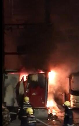 據附近多位居民講,當時先是變壓器起火,隨後發出一聲巨響,聲音特別大,之後大火蔓延,將一旁停放的大客車引燃,疑似是變壓器電線短路引發的火災。