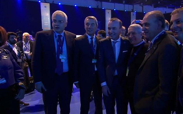 更為尷尬的是,就在巴尼耶盡力想hold住全場時,德國議員曼弗雷德⋅韋伯在巴尼耶面前起身拍照留念……