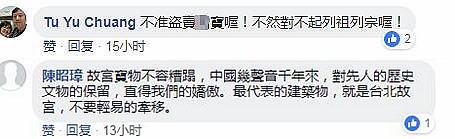 更多的網友則是覺得民進黨當局此舉有陰謀,最有可能的就是準備“偷樑換柱”、“盜賣珍寶”, 為此還有台灣網友煞有其事的力勸民進黨:不準盜賣中華珍寶,“不然對不起列祖列宗”!