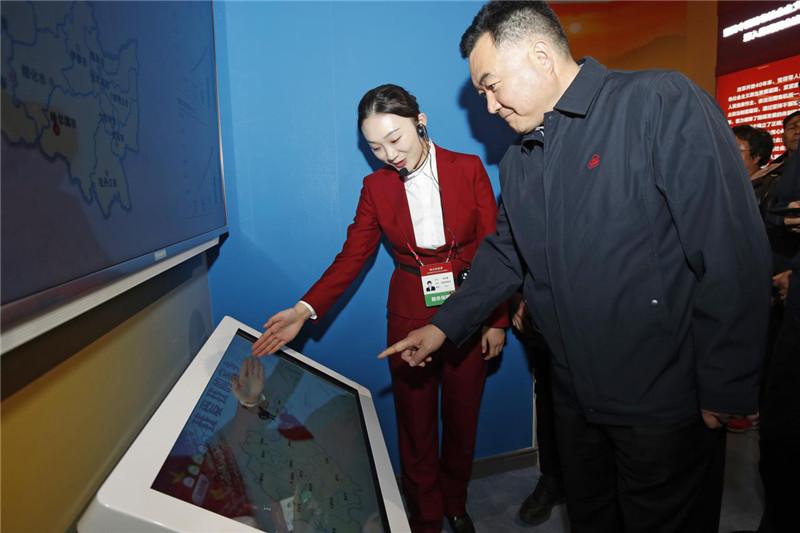 武玉傑董事長一行注意到第四展區“歷史鉅變”和第五展區“大國氣象”中均有對我國非公有制經濟發展和民營企業發展實踐和成就的展示。其中着重介紹到習主席對民營企業的六個方面的政策舉措:減輕企業税費負擔;解決民營企業融資難融資貴問題;營造公平競爭環境;完善政策執行方式;構建親清新型政商關係;保護企業家人身和財產安全。武玉傑董事長久久駐足,深切的感嘆説:看到祖國日新月異的變化,尤其是學習了習主席對民營企業的充分肯定以及多項支持鼓勵民營企業發展壯大的政策措施,相信民營企業迎來了發展的又一個春天。
