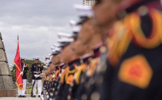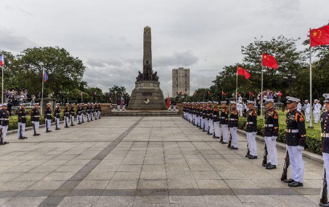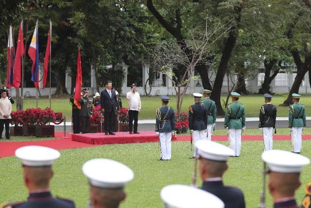 杜特爾特為習主席在總統府前草坪舉行了隆重歡迎儀式。習近平在杜特爾特陪同下檢閲儀仗隊。