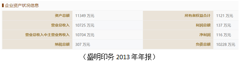 招股説明書披露,盛明印務一直是有友食品報告期內的重要供應商。公司主要其有友食品提供包裝裝潢印刷品。2013年有友食品向其採購金額為10331.21萬元,位居當年第二大供應商。但盛明印務提交到工商系統的年報顯示:2013年度其對外營收總額為10704萬元。這就意味着,成立經營十數年的盛明印務2013年的營業收入中有96.5%都是由有友食品貢獻的。