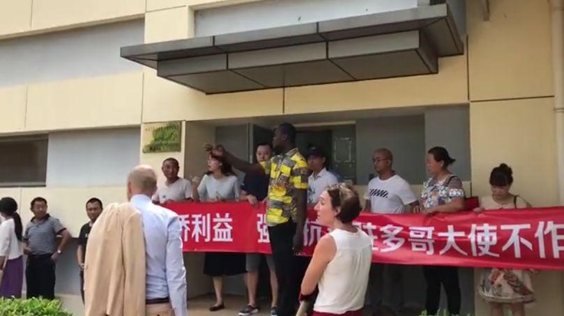 這是刀哥在社交媒體上看到的一張照片,一些同胞堵在中國駐西非國家多哥的大使館門前,拉着橫幅維權。