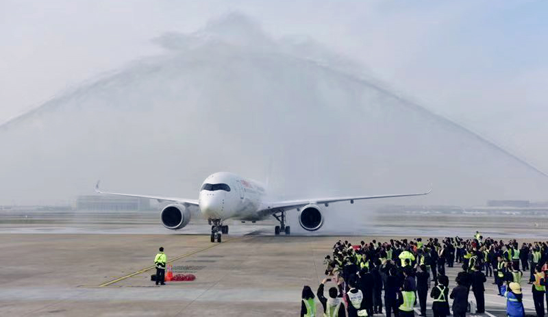 全球首發包廂式公務艙 東航空客A350-900飛抵上海虹橋機場