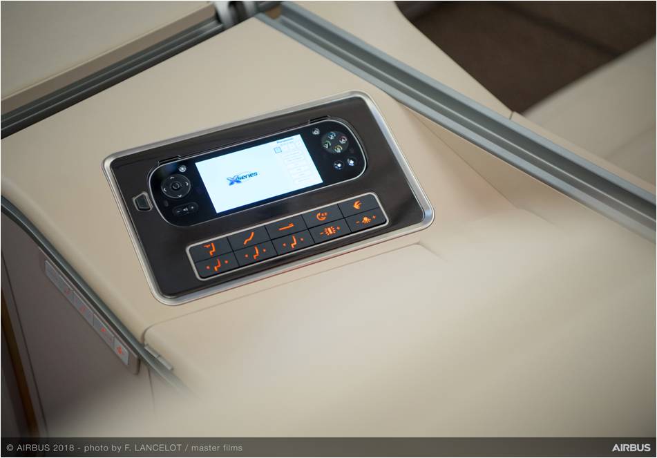 豪華公務艙的每個座椅上都安裝了兩個觸手可及的座椅控制板,主控制面板採用黑色金屬陽極化處理,可供旅客在坐姿狀態對座椅、顯示器和側窗(僅限兩側座椅)等進行調節控制;座椅內側的鋁合金輔助控制面板幫助旅客在躺下狀態下對座椅及顯示器等進行調節和控制,並可在有需要的情況下呼叫客艙乘務員。