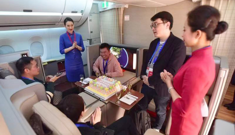 東航應邀參加首架A350接機儀式的幸運旅客有一位恰逢11月30日生日,在包廂式豪華公務艙慶生