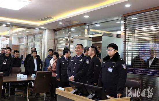 當天,民企代表們統一乘車先後到永清縣公安局曹家務派出所、劉其營派出所、交警大隊車管所及事故中隊、看守所進行參觀。代表們參觀了升級改造後的視頻監控中心、訊問室、辨認室、醒酒室等執法辦案場所,詳細瞭解了“陽光户籍室”肩並肩、零距離服務模式,並饒有興趣地現場測試了智能機器人“小喬”的人口業務諮詢、信息查詢等功能。